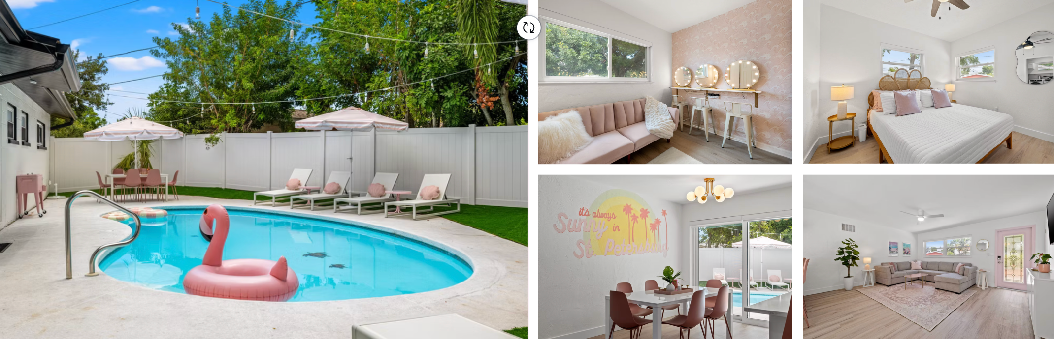 Welcome to our pink bungalow located near downtown St. Pete & beaches! Perfect for bachelorette parties or girls' getaways, our glam retreat has 4 bedrooms & 2 bathrooms, sleeping up to 12 guests. With a sparkling pool, photo-worthy outdoor surfboard shower & a beauty bar for getting ready, it's the ultimate spot for unforgettable memories. So grab your favorite ladies, pack your swimsuits & get ready for a weekend you'll never forget!